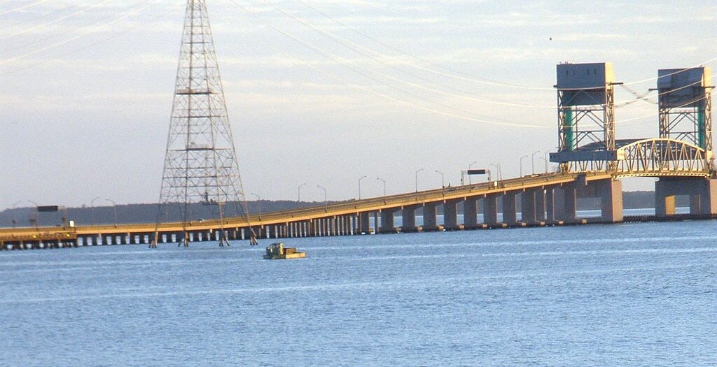 The original legislation proposed last year by Del. Kim Taylor, R-Petersburg, stipulated the bridge should run from Hog Island near the Surry nuclear power plant to a spot near the Jamestown ferry, a staffer in Sen. Aird’s office told us Tuesday.