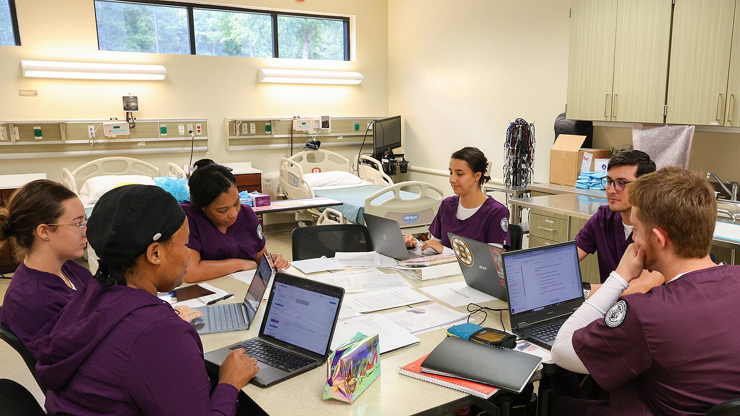 “It’s very hands on,” Swain said. Students practice with mannequins and each other to build patient care skills before entering clinical rotations.