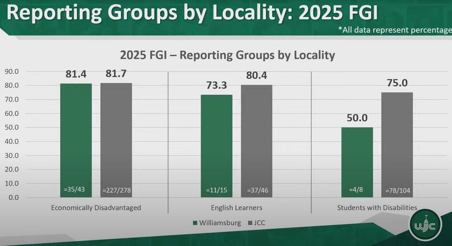 Williamsburg Board Member Amy Chen expressed concern with the slightly lower graduation rates and the gaps between different student groups, saying “I always felt like we are above a lot of the state averages.”