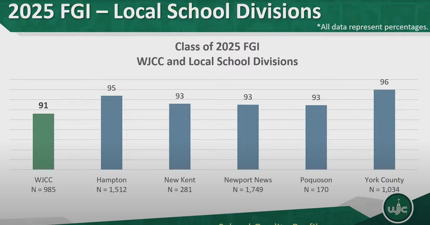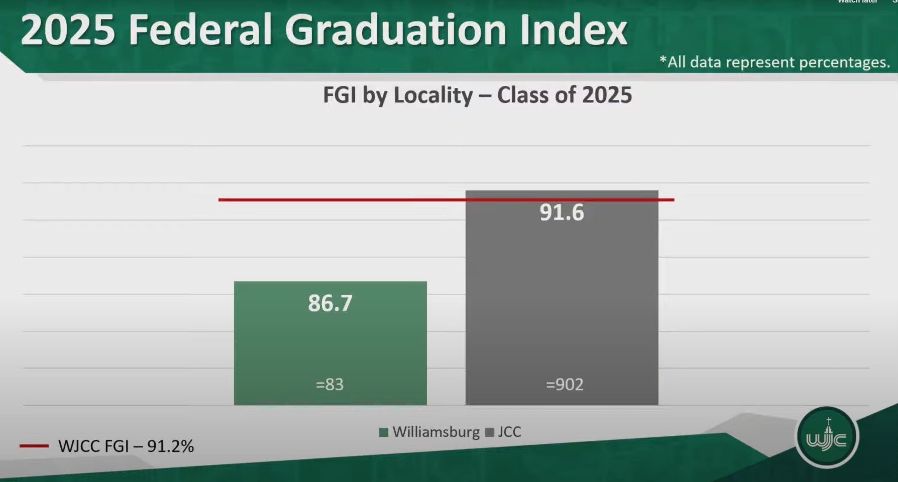 Williamsburg-James City County schools’ graduation rates are slightly better than the state average, but still have some catching up to do with some schools in the region, according to the state education department’s latest scorecard.