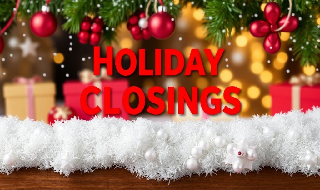 Closing at 12 p.m. on December 24; Closed December 25 and January 1