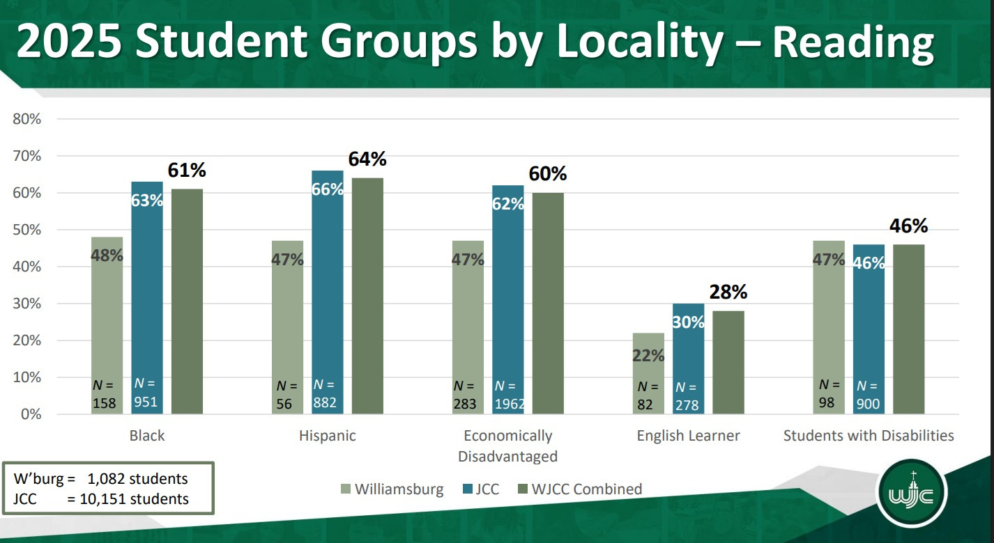 As you can see, Williamsburg’s sole advantage was among students with disabilities, where city students edged out those from the county by one percentage point.