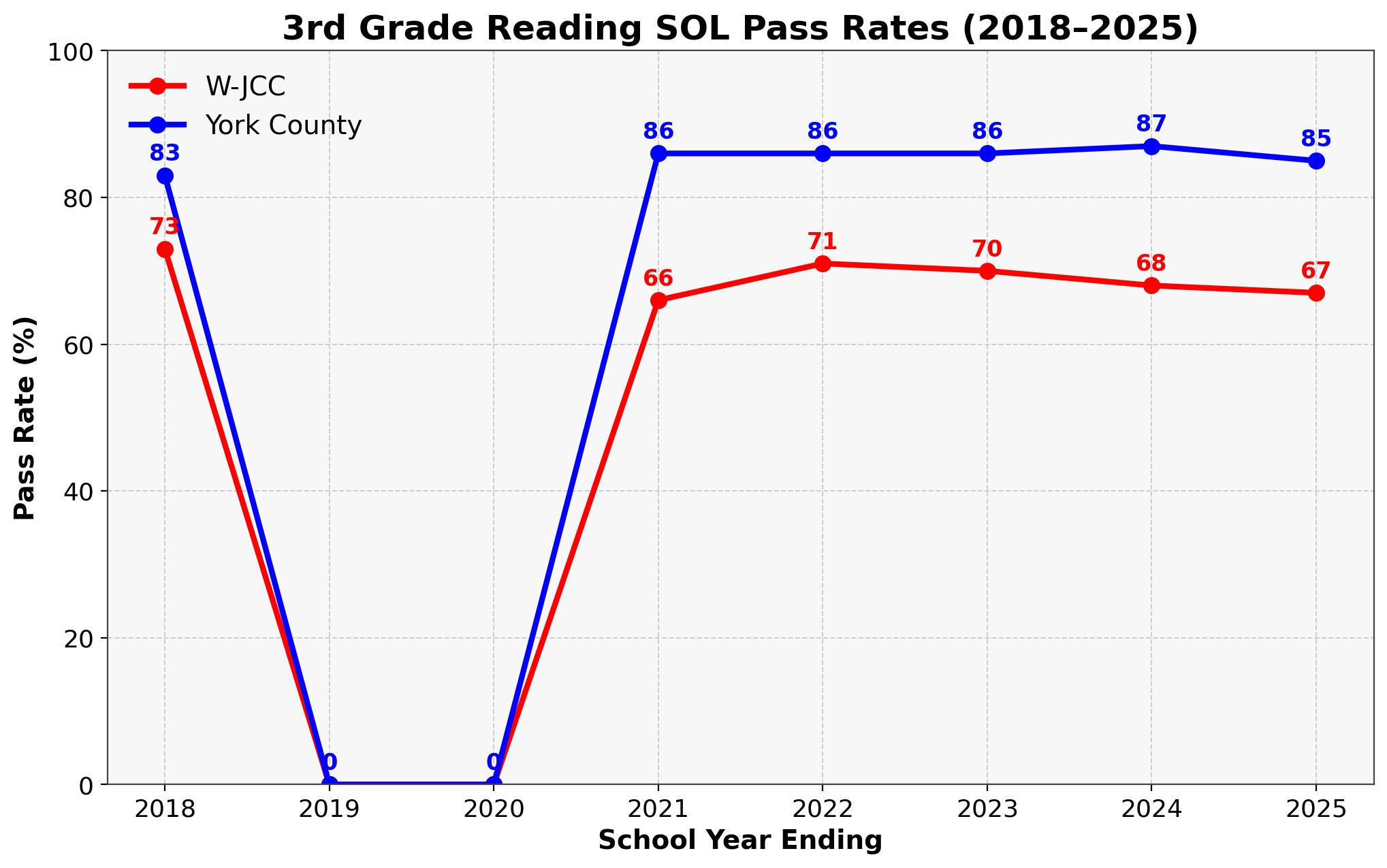Speaking of accountability, third grade reading skills, considered critical for future academic success, dropped to 67% for students in the Williamsburg-James City County Schools in tests administered last year. Third graders in York County fared significantly better, at 85%.