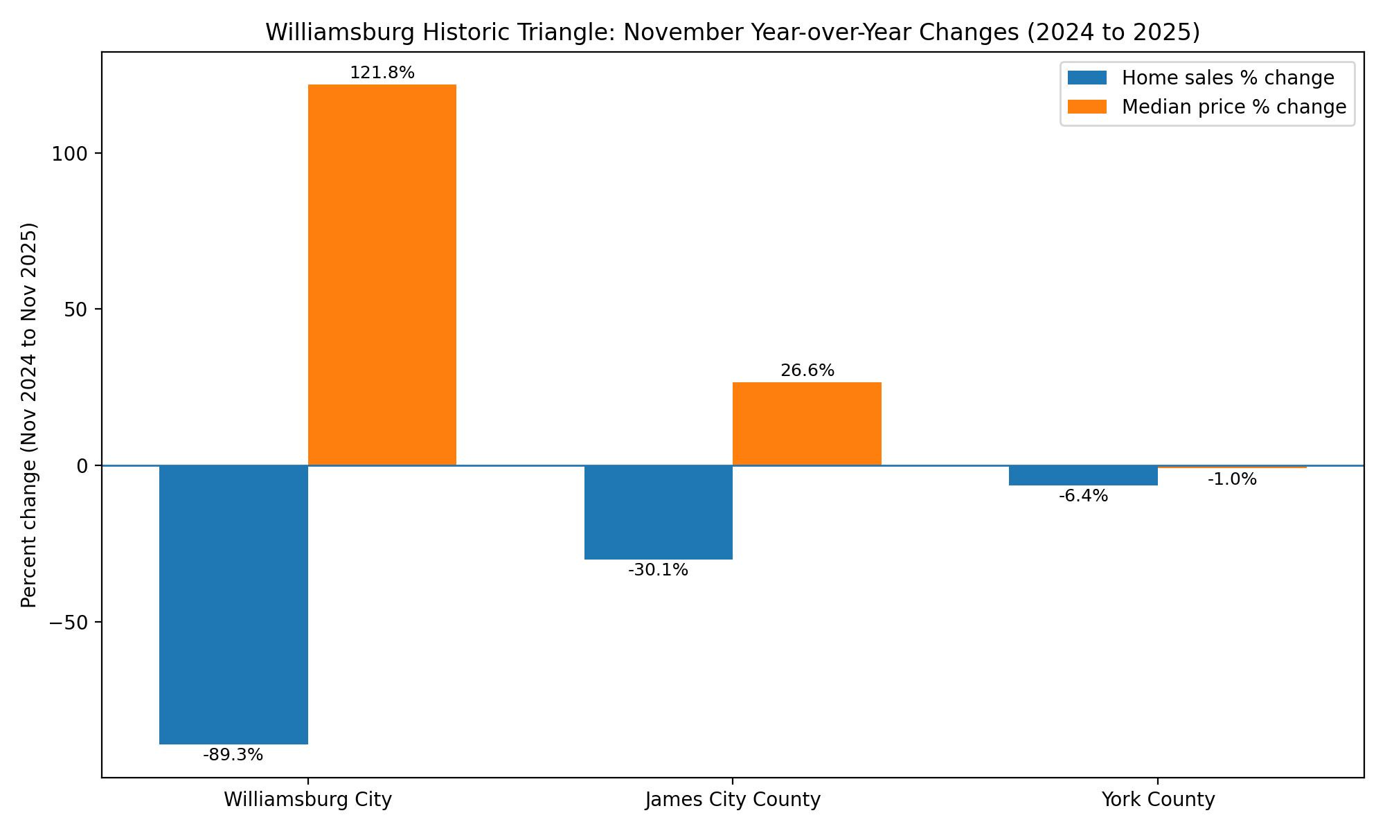 Sales slowed, but prices increased, in both James City County and Williamsburg. Sales and prices both declined slightly in York County.